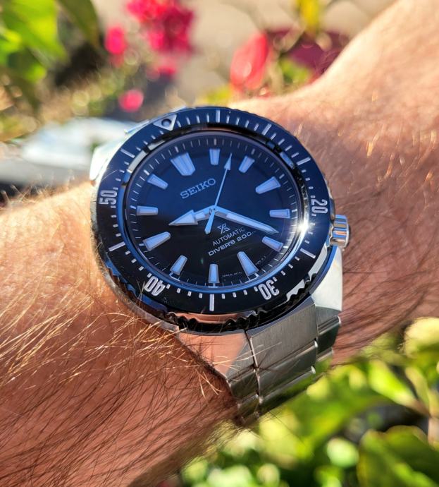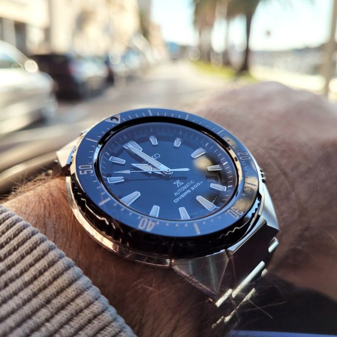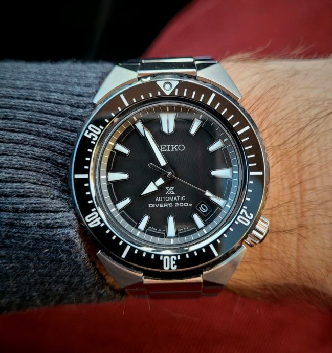 Diam. 45mm, međutim bezel je na 43mm pa se sat nosi manje. 200m wr. Uz 50mm L2L i 13mm debljine itekako nosiv; i u finijim prilikama - diver za sve.