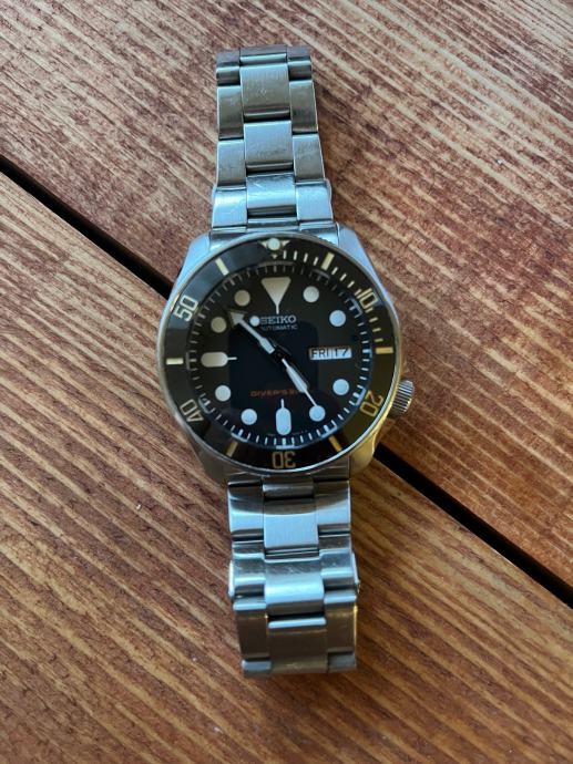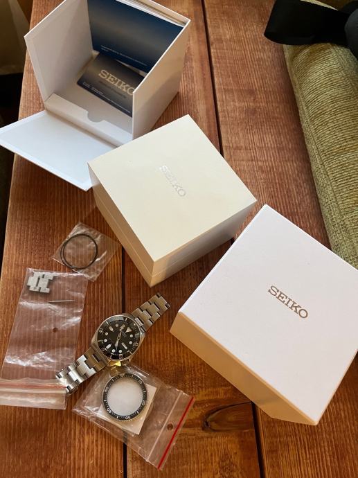 Prodajem seiko skx007, na njega sam stavio safirno staklo, keramičku lunetu i novi rotirajući prsten, te čeličnu narukvicu. Uz to dajem i sve original dijelove tako da se može vratiti u tvorničko stanje bilo kada, original lunetu sa prstenom, hardlex staklo, original seiko nenošeni gumeni remen…uz sat ide kutija i svi papiri od dana kupnje.