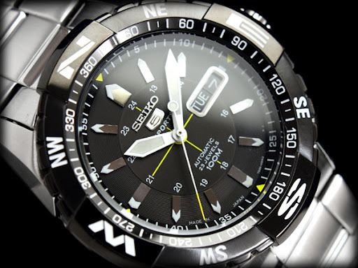 Bezel Finish: Brushed/Glossy Black Ionized with White numbers.