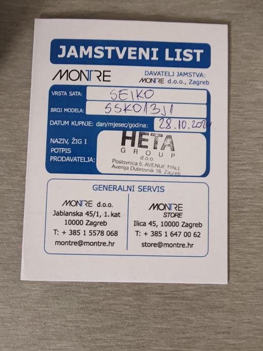 Seiko gmt presage ssk013j1, jedanput nošen, kutija i važeće heta jamstvo, bez ikakvih tragova korištenja