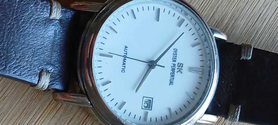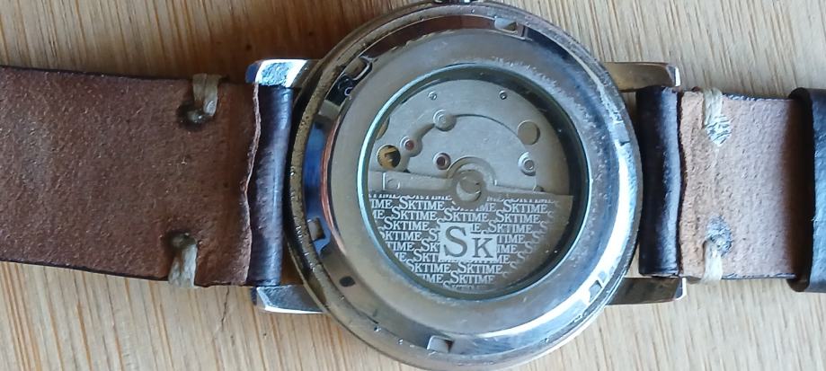 SK automatic muški sat promjera 40 mm ispravan tocan uredmo prebavuje datum,dobar kozni remen.Sa tragovima nošenja uglavnom vidljivim na kučistu.šaljem tisak posta,njuskalo.