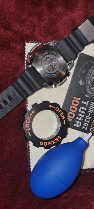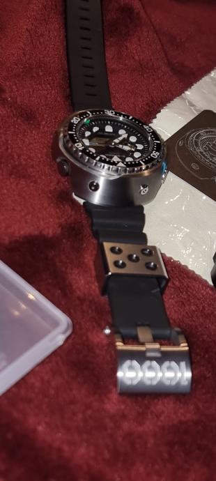 Vodootpornost 1000m (peak rekord 1510m u Antarktiku prema podacima s interneta), safir staklo s AR premazom na donjoj strani, super Lume plave boje (odličan glow 2-3+ sata u mraku) i FKM guma remen (Daikin Japan, otporan -45°C do +204°C).