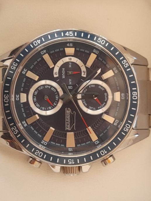 Prodajem muški sat SLAZENGER Jako malo nošen.Prekrasan markirani i elegantan sat što se vidi kad ga i primite u ruku po težini.Sadrži sat,sekundru,datum,dani cronograf.Šaljem i poštom.Pogledajte i ostale moje oglase.