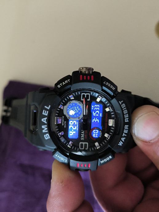 Iz oglasa potpuno novi SMAEL muski sportski sat,sa svim osnovnim funkcijama,certifikatom te karticom i garancijom,dakle moze se servisirati dok je vaueca garancija a to je godinu dana..u Ri u WATCH centru..zvati na 095 344 19 08