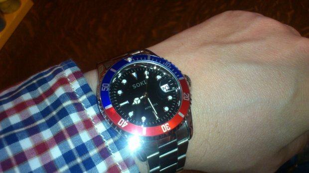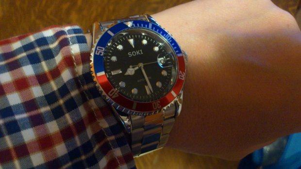 Ronilački sat rađen po uzoru na Rolex, automatski mehanizam (samonavijanje na pokret ruke). Iznenađujuća kvaliteta uzmemo li u obzir cijenu. Imam jedan potpuno nov (350 kn) i jedan rabljen tijekom ljeta (sa skraćenom narukvicom, linkove dajem uz sat, cijena rabljenog je 200 kuna). Fora sat za ljeto, kada Vam je pravi Rolex na odmoru, u pripadajućoj kutiji :-)
