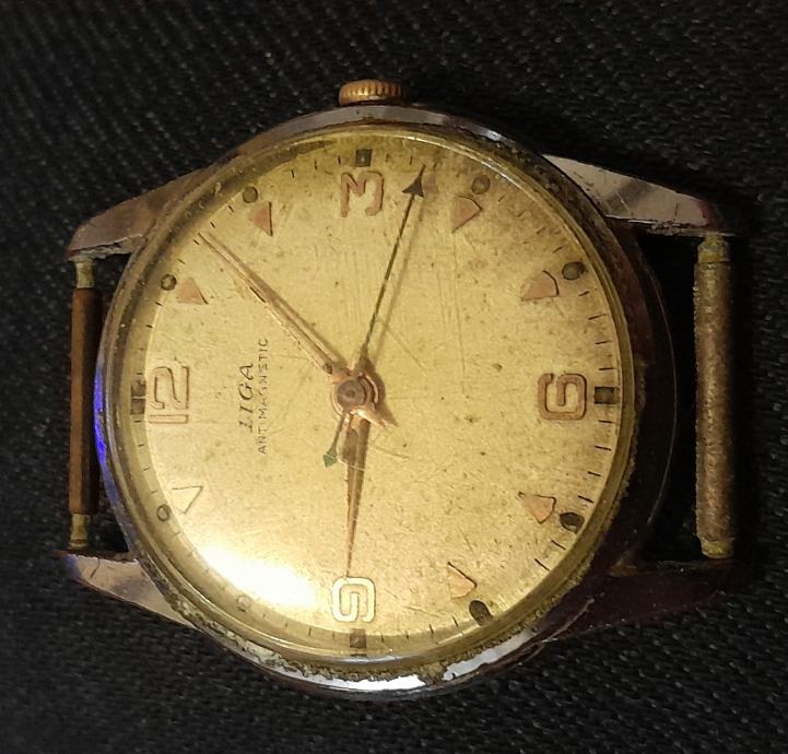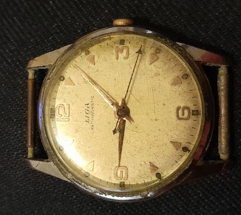 Stari muški ručni sat Liga,potreban servis jer sat ne ide kad se protrese pođe pa stane inače sve je kompletno