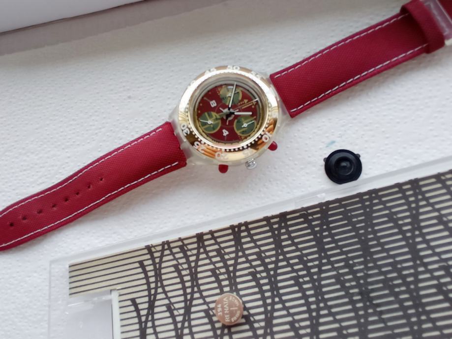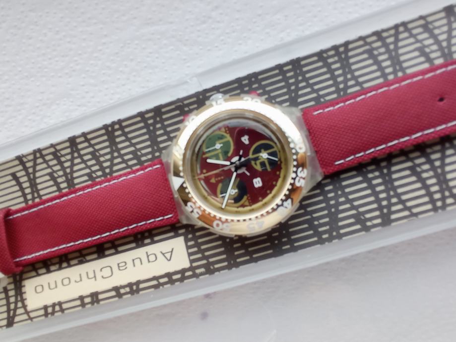 Swatch Aqua RED SUN dolazi iz serije Aqua Chronos koja se nudila samo 90-ih, ovo je mješavina Scuba 200 i Chrono.