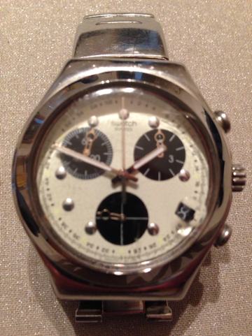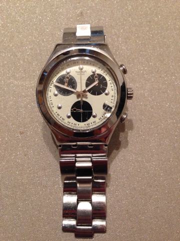 Prodajem original sat Swatch Irony stanless steel (four jewels), kupljen u Švicarskoj, original njegov remen, water-resistant, baterija 9,5x3,6 1,55V.
