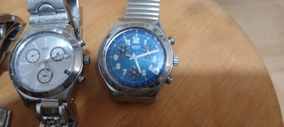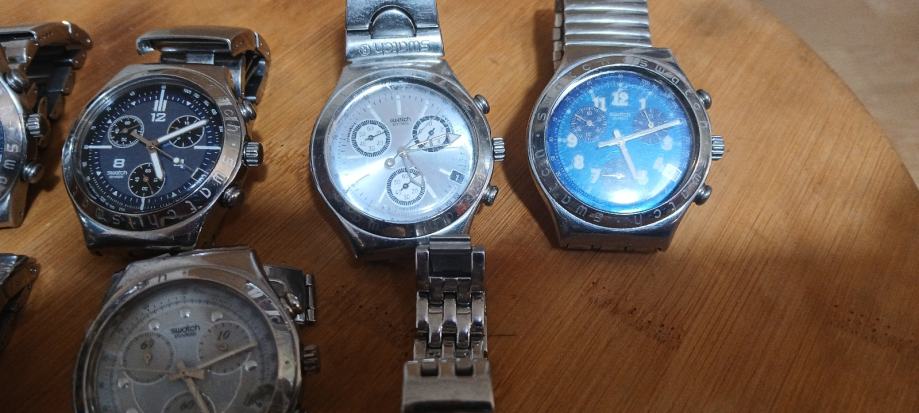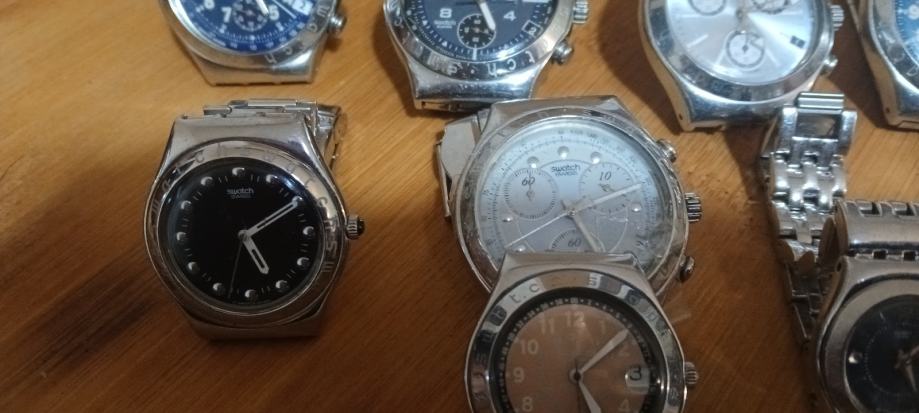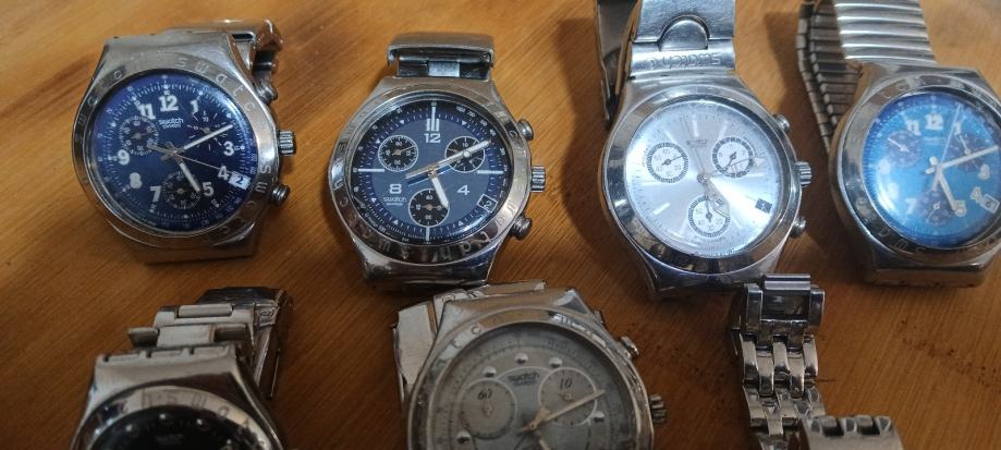 Lot swatch 8 satova 5 crono kvaj bez narukvice treba staklo i tri druga od kojih jedan bez narukvice svi satovi rade nove baterije.cijena niska i fiksna.šaljem posta tisak,njuškalo. Moze zamjena za sat ili vise njih