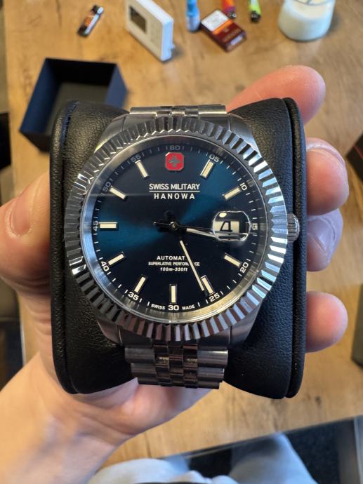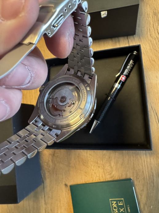 Prodajem muski sat swiss military hanowa datejust automatic. Kupljen u dubaiju za cca 600eur. Full set, linkovi, kutija s kemijskom, internacionalno jamstvo, racun. 41mm