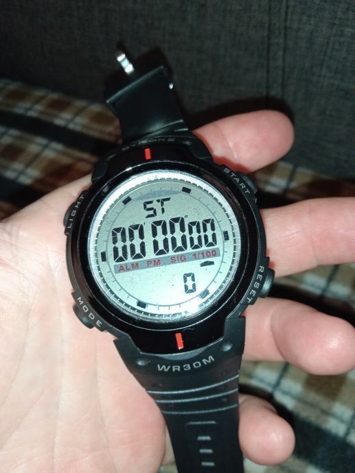 Ima prikaz 24 satni, pozadinsko svijetlo,alarm,prikaz datuma i štopericu