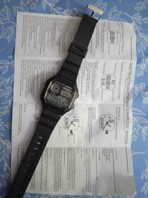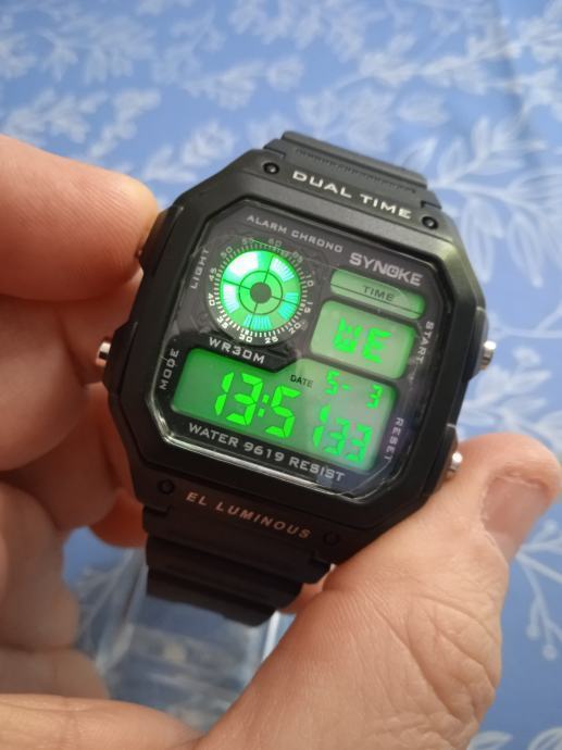 Ima prikaz 24 satni, pozadinsko svijetlo u 7 različitih boja,alarm,prikaz datuma i štopericu
