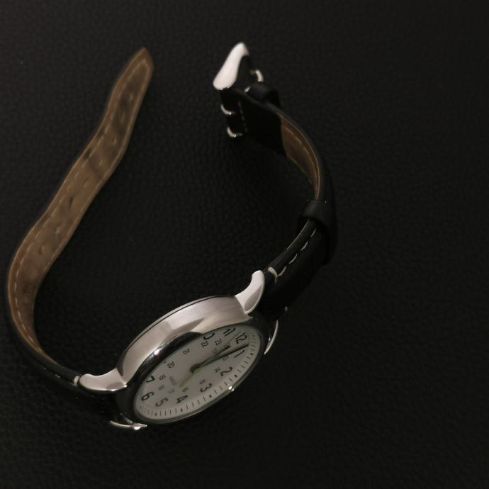 Narukvica/remen: crni kožni remen s bijelim šavom, klasična kopča (srebrna)