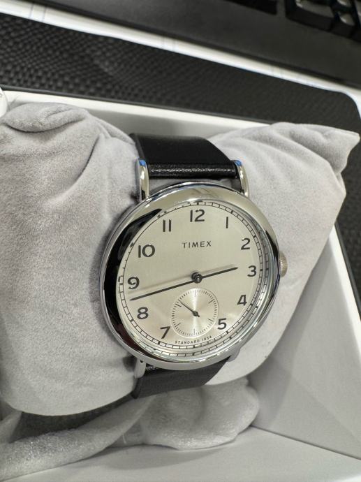 Prodajem Timex Quartz sat s elegantnim vintage dizajnom. Sat ima kućište u srebrnoj boji s kristalno čistim brojčanikom u kremastoj nijansi, klasičnim arapskim brojevima i dodatnim malim brojčanikom za sekunde. Crna kožna narukvica daje satu elegantan i svestran izgled. Quartz mehanizam osigurava pouzdano mjerenje vremena. Sat dolazi u original kutiji.