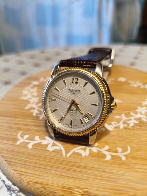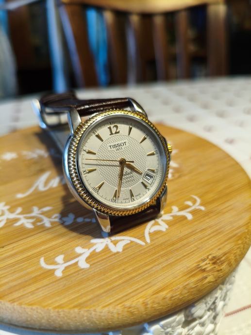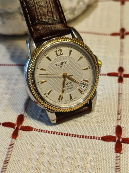 Prodajem Tissot Ballade Automatic muški sat, stanje novo bez etikete. Radi se o elegantnom automatskom satu s kombiniranim kućištem u srebrnoj i zlatnoj boji te tamnosmeđim kožnim remenčićem. Brojčanik je svijetle, kremaste boje s teksturiranim uzorkom i zlatnim kazaljkama, a sat ima i datum prozorčić. Obruč kućišta ukrašen je karakterističnim zlatnim uzorkom koji daje satu klasičan i reprezentativan izgled. Swiss made kvaliteta koja ne treba poseban uvod.