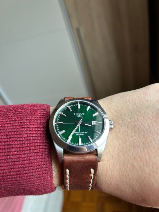 Sat je u vrlo dobrom stanju, pažljivo nošen i čuvan. Radi besprijekorno – automatski mehanizam s 80 sati rezerve snage i silicijskom oprugom pruža preciznost i bezbrižno nošenje. Zeleni dial uživo izgleda još ljepše nego na fotografijama – elegantan, ali poseban, lako se kombinira uz poslovne i casual kombinacije.