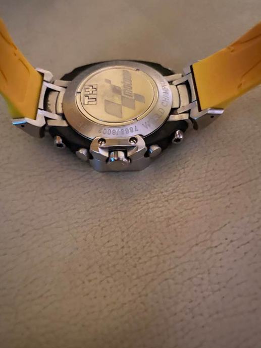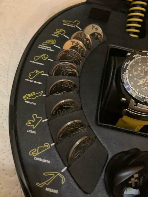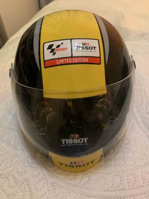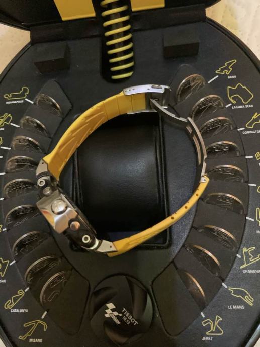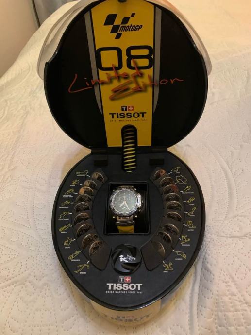 Dynamic and high-performing sums up this powerful duo of the MotoGP and its official timekeeper. This flamboyant yellow timepiece, which Tissot is producing in a limited edition of 8002, reveals clear parallels with the world of extreme motorbiking: carbon fibre for the case, carbon on the dial, a “brake disc” design, interchangeable medallions representing the 18 championship circuits and, to top it all off for motorbike aficionados, a special helmet-shaped case. It looks like being a really thrilling season.