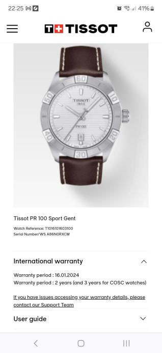 Sat dolazi sa kutijom i popratnim dokumentima i registriran je na Tissot korisničkim stranicama.