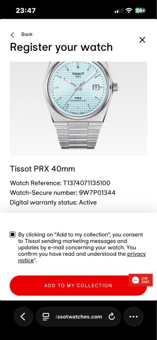 sat ima valjani serijski broj za register my watch