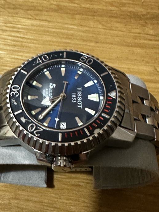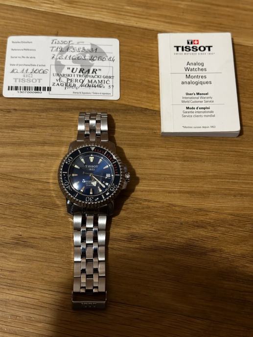 Prodajem rijedak Tissot sat Seastar 1000 kao 1. vlasnik. Model T19.1.583.31. Zadnji servis izvršen je u 6. mj. 2021. g. Posjedujem papire, tj. knjižicu i karticu. Kupljen je kod Mamića u Zagrebu. Sat je trenutno na metalnom remenu a u kompletu ide i plavi. Mehanizam u satu je ETA 2824-2 poznat širom svijeta kao jako pouzdan. Na satu se vide tragovi korištenja ali ne na staklu. 098657118 ili samo Njuškalo poruke.
