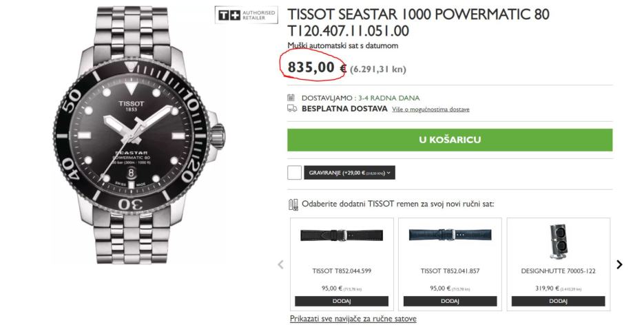 Prodajem prekrasni crni Tissot Seastar 1000 powermatic 80. Sat je u odličnom gotovo novom stanju.