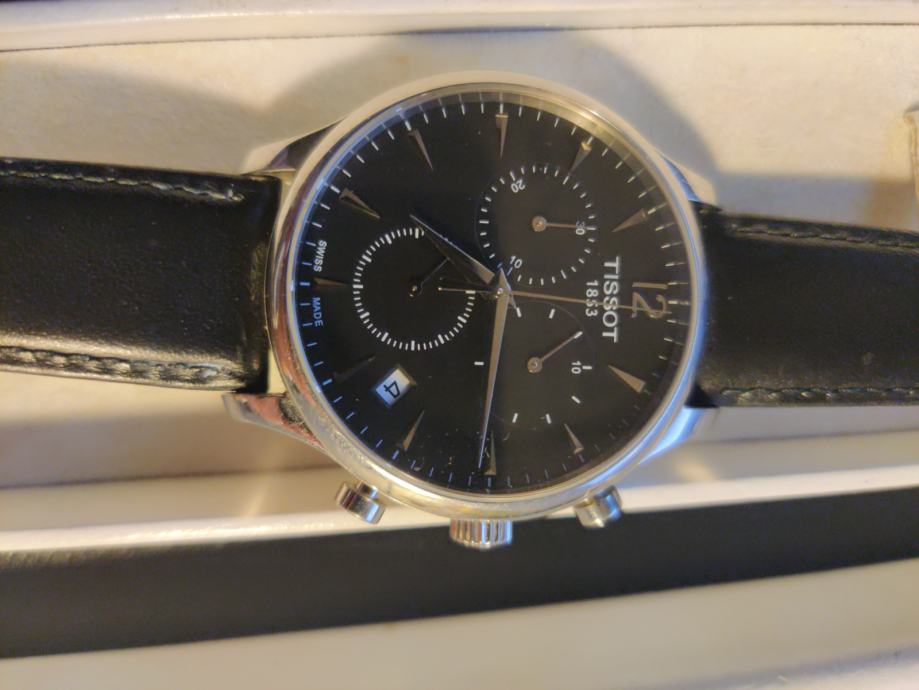 Nošen no točan sat promjera 42 mm, sa safirnim staklom, bez ogrebotine i u odličnom stanju. Narukvica je u dobrom stanju. Za veće šake. Novi košta 280$!