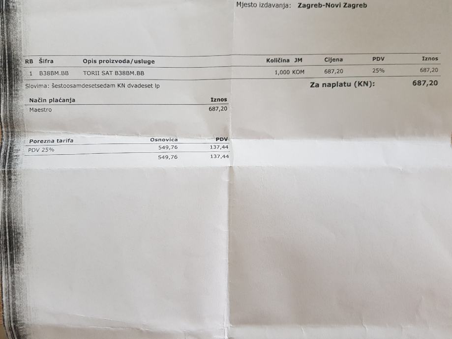 Sat je neoštećen, izgleda kao nov. Plaćen 687 kn. Garancija vrijedi još 12 mjeseci.