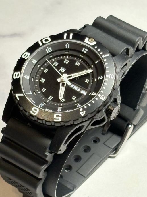 Doslovno 1 nošen. Kao nov. Kupljen u Hrvatskoj 14.3.2023. Prvi vlasnik. Izvrstan i precizan Ronda švicarski mehanizam. Original kutija. Tricijeve cijevi (svijetle neovisno o suncu). Military grade (vojni standard). Cijena novog 450eur.