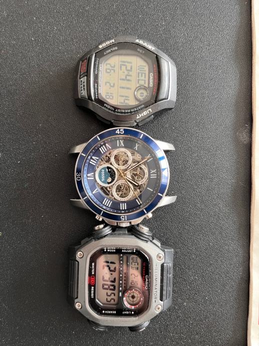 Tri muska sata dva Casio jedan Fossil. Sva tri bez remena. Rade normalno malo steka Fossil za naviti.