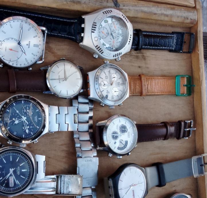 FOSSIL Q hibrid ili KLON SMARTwatch FUNKCIONIŠE..kao i Casio Beside kao nov, Freezing snow . Alu kućište SVE FUNKCIONIŠE.. KAO I OSTALI SWATCH SA SLIKA..od navedenih Swatch napomena staklo je oštećeno kod irony chronograph sa crnim ciferblatom...Seiko Automatic 17 jewelis ,helvetia reaguje na