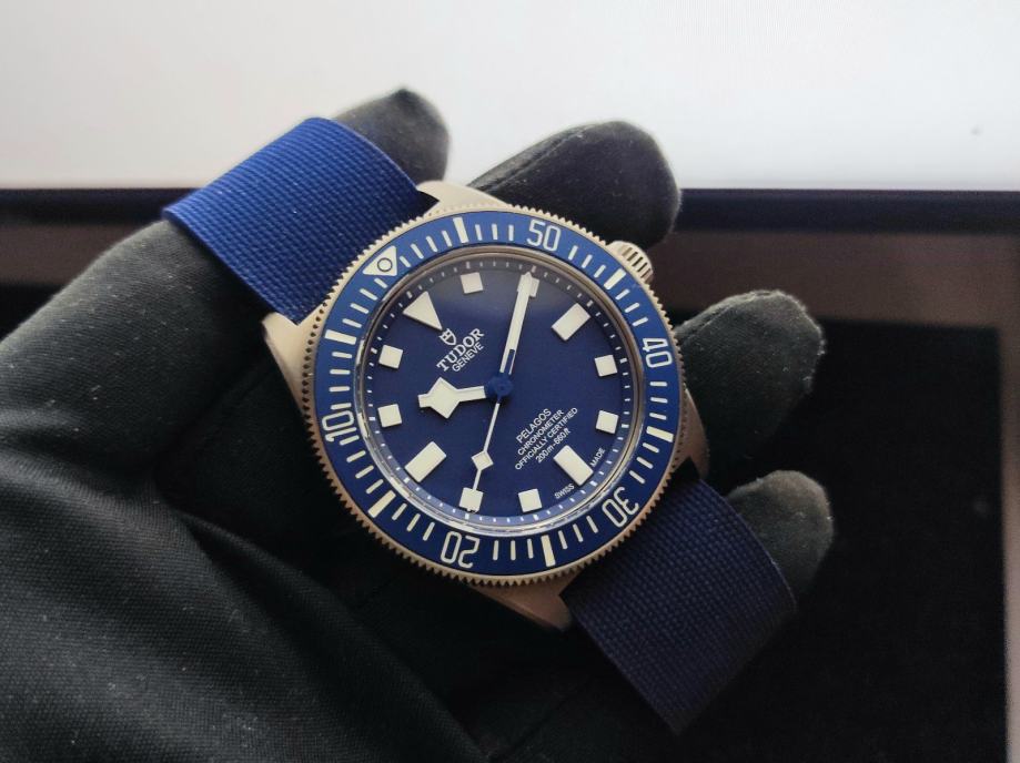 Prodajem plavi Tudor Pelagos FXD, titansko kućište, full set 11/2022, pod garancijom do 11/2027. Dolazi s 2 originalna remena i 2 originalne kopče (slika s tekstilnim remenom je s neta, takav remen također dolazi u setu). Kutije,kartice, hang tag, čak i račun prve kupnje. Sat nema niti jedan trag nošenja. Cijena kod ovlaštenog trenutno 4370 eur.