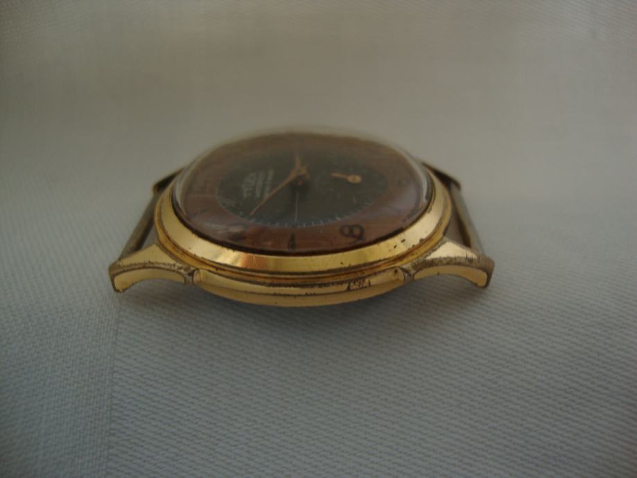 Pozlaćeni stari sat u ispravnom stanju smeđi predivni cifer u dvije nijanse