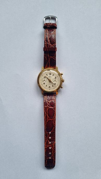 Prodajem predivan vintage chronograph proizveden od francuske kompanije Herma sa swiss landeron 149 mehanizmom. Po informacijama koje sam prikupio na internetu, sat je proizveden 60ih godina. Herma brand poznat je po chronograph satovima proizvedenim za 24h Le Mans.