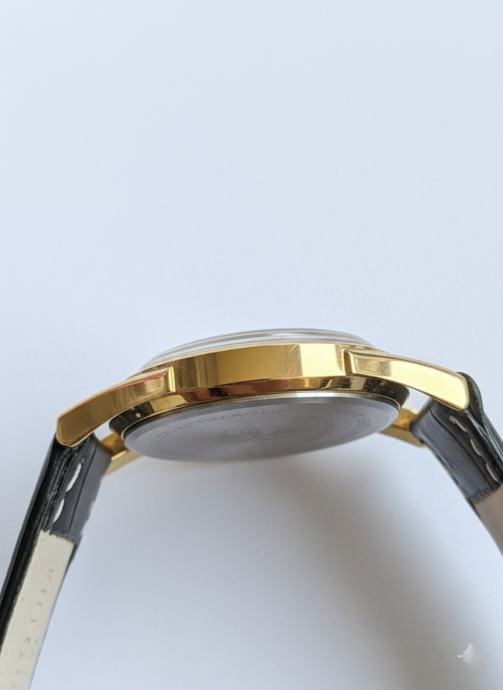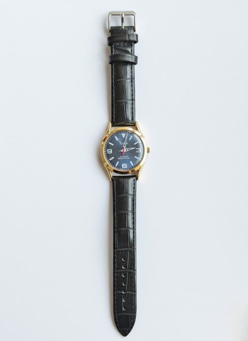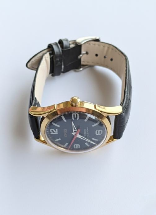 Prodajem vintage Oris sat u potpuno novom stanju bez etikete. Elegantni muški sat ima zlatni okvir, plavu brojčanicu i kvalitetni crni kožni remen.