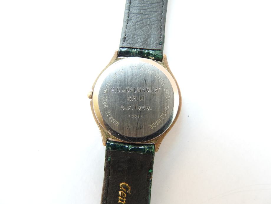 Na poleđini se nalazi posveta koja upućuje na poklon iz 1989. godine. Sat je u potpunosti funkcionalan i spreman za korištenje.