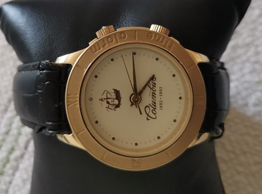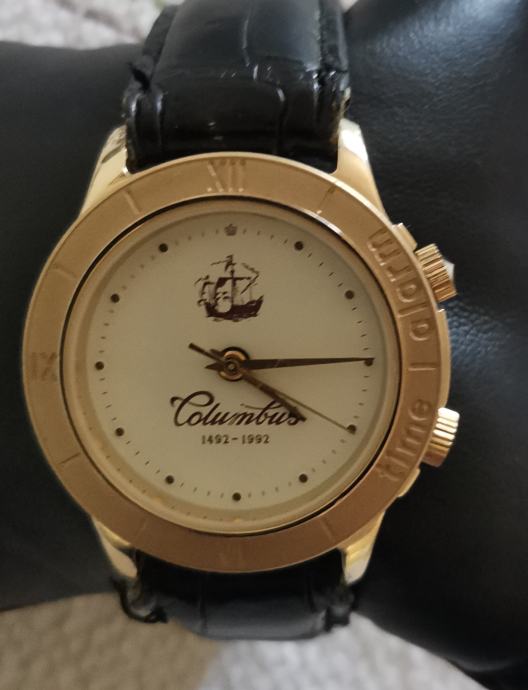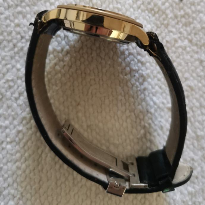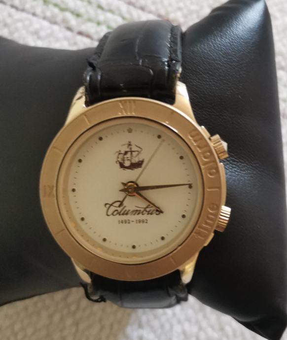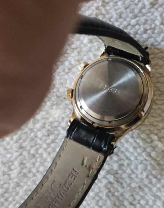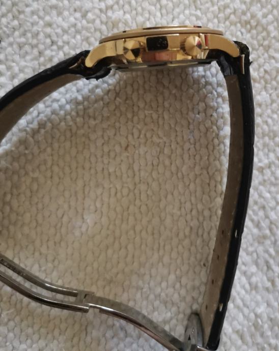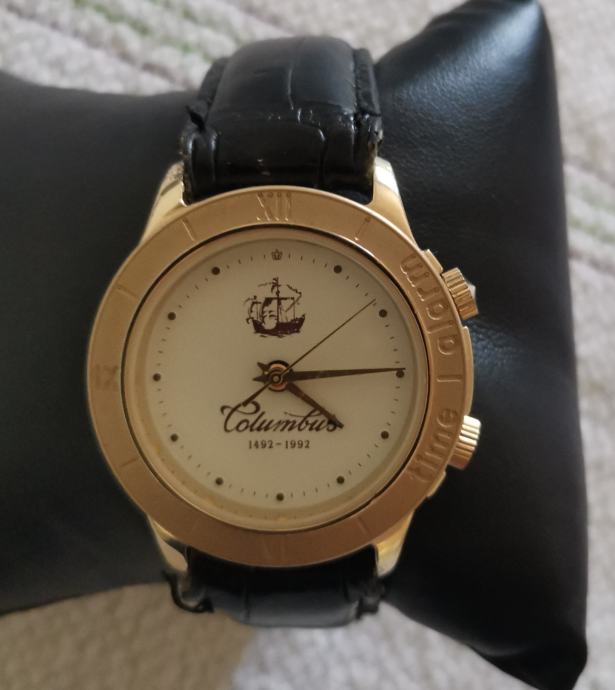 Vintage pozlaćeni sat iz 1992. godine POLJOT "COLUMBUS" ALARM (čekićar)...mehaničko navijanje.,,,PROMJER 35,6 mm bez krunica i lugova...debljina 10,8 mm..širina prihvata remena 18 mm...kopča IWC (nije original)