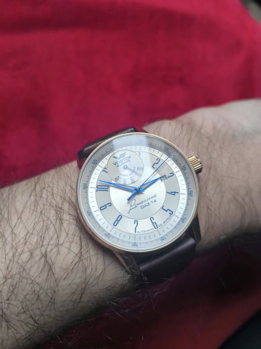 Prodajem rabljeni muški sat Vostok Europe Gaz-14 s elegantnim kožnim remenom i prepoznatljivim dizajnom. Sat dolazi u originalnoj kutiji i s originalnim papirima. Kupljen početkom 2024., nošen dva tjedna, u odličnom stanju.
