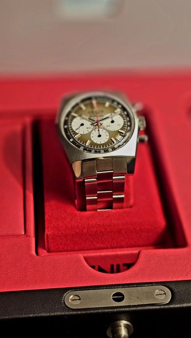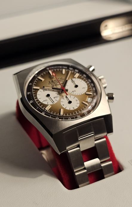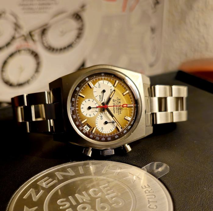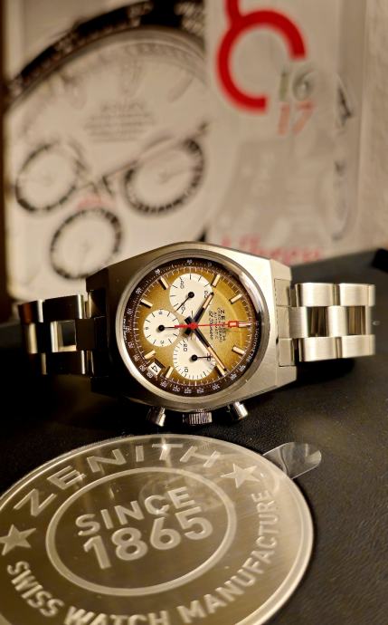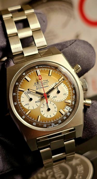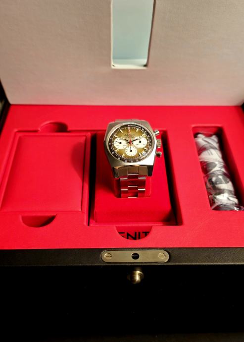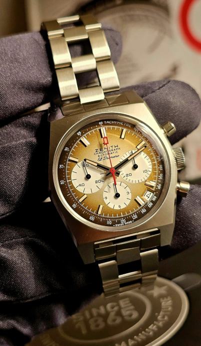 Jedan od najpoželjnijih modela iz kolekcije Zenith Chronomaster Revival, vjerna replika originalnog modela A384 iz 1969. godine. Sat dolazi s legendarnim El Primero 400 automatskim mehanizmom, poznatim po preciznosti i frekvenciji od 36.000 vph.