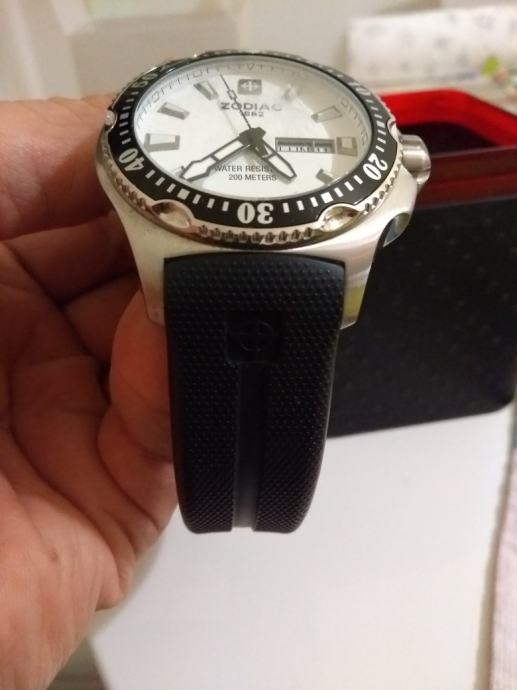 Kvalitetan ronilački švicarski gore navedeni sat, u originalnoj kutiji, malo nošen, kupljen 2009. godine, potrebno zamijeniti bateriju.