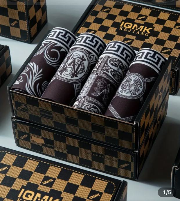 3 kom IQK Muške Luksuzne Bokserice - Prozračne & Brzosušeće, Elegantne Crno-Bijele Tiskane Elastične Gaćice u Poklon Kutiji, Dnevno Nošenje Gaćica|Elegantne Uzorčane Gaćice|Mješavina Poliestera, Bokserice.