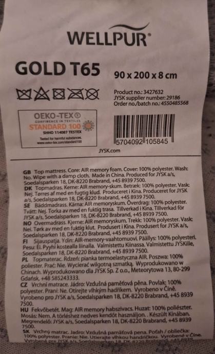 Prodajem slabo rabljeni nadmadrac Wellpur Gold T65 dimenzija 90cm × 200 cm × 8cm.