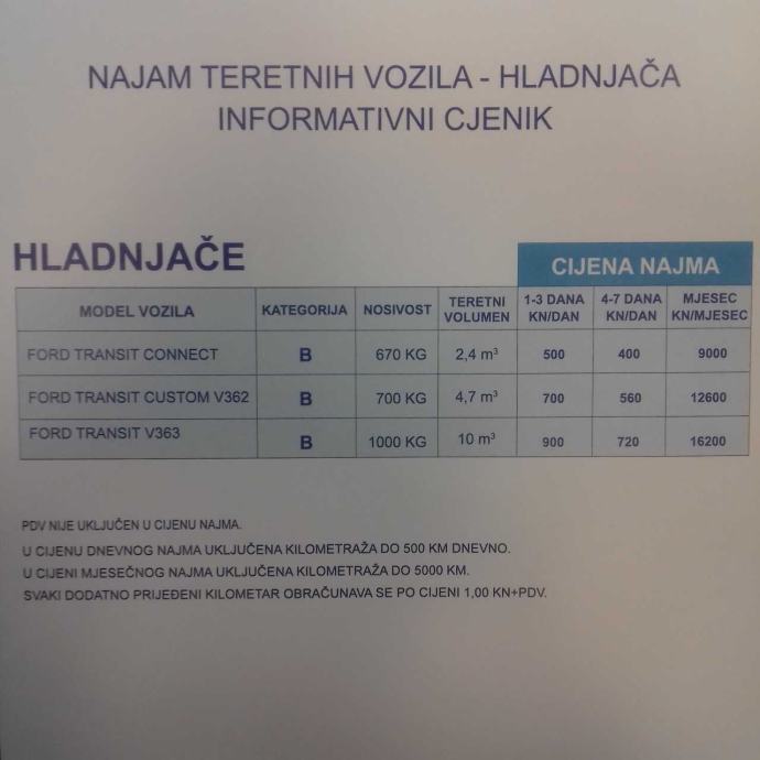 SVAKI DODATNI KILOMETAR OBRAČUNAVA SE PO CIJENI OD 1,00 kn +PDV