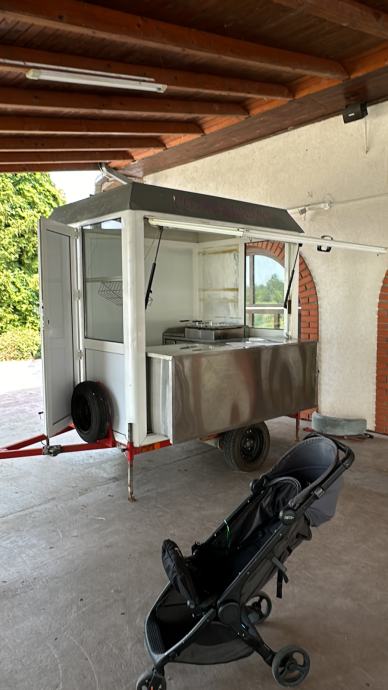 U ponudi imamo ugostiteljsku prikolicu s kuhinjom, koja je idealna za sve vrste događaja kao što su festivali ili rad na sezoni. Prikolica je registrirana i može se voziti s B kategorijom vozačke dozvole. Prikolica je dužine 2 metra.