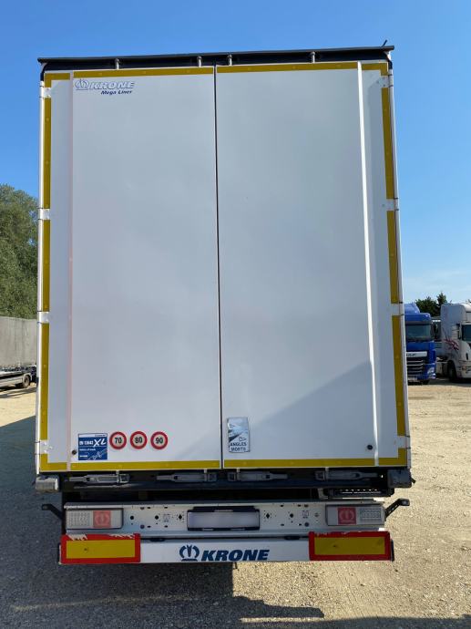 Krone SD Megaliner, u prometu od 04/2023, ABS, EBS, zračni ovjes, podizna osovina, disk kočnice, podizni krov, Code XL certifikat, kutija za alat, aluminijske letve, dimenzije tovarnog prostora DxŠxV: 13.620 mm x 2.500 mm x 2.800 mm, NDM 36.000 kg, masa praznog vozila 6.817 kg, nosivost 29.183 kg, gume 385/55 R22,5. VIN: WKESD000001057279