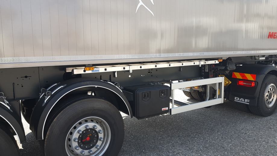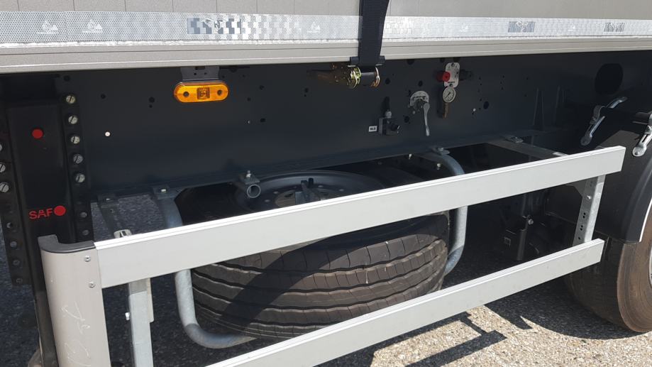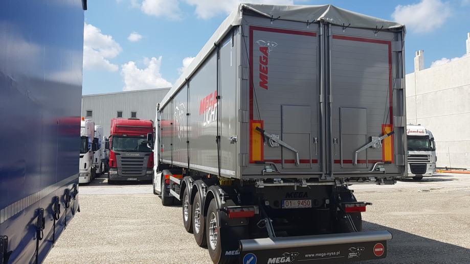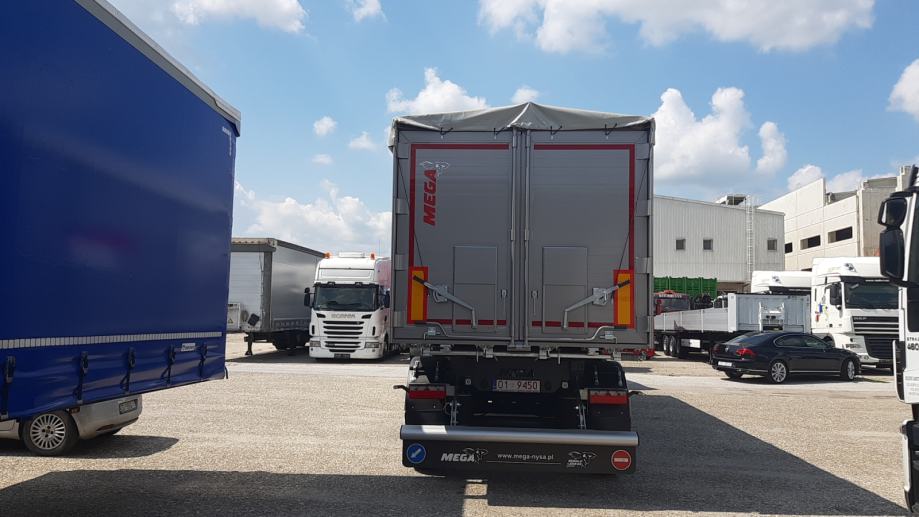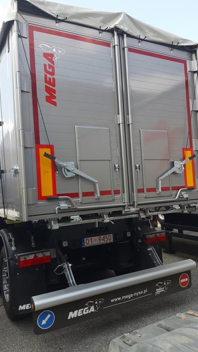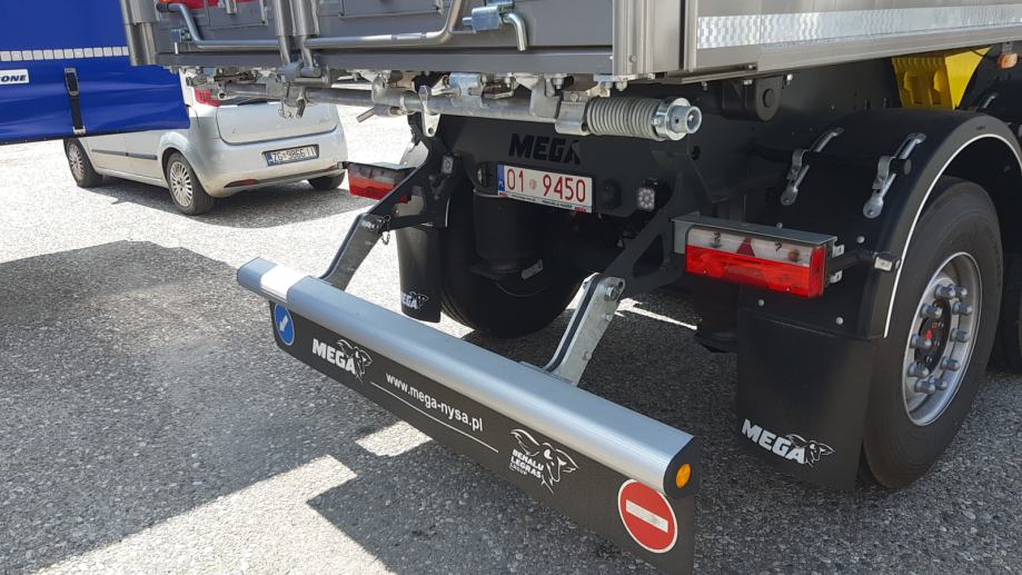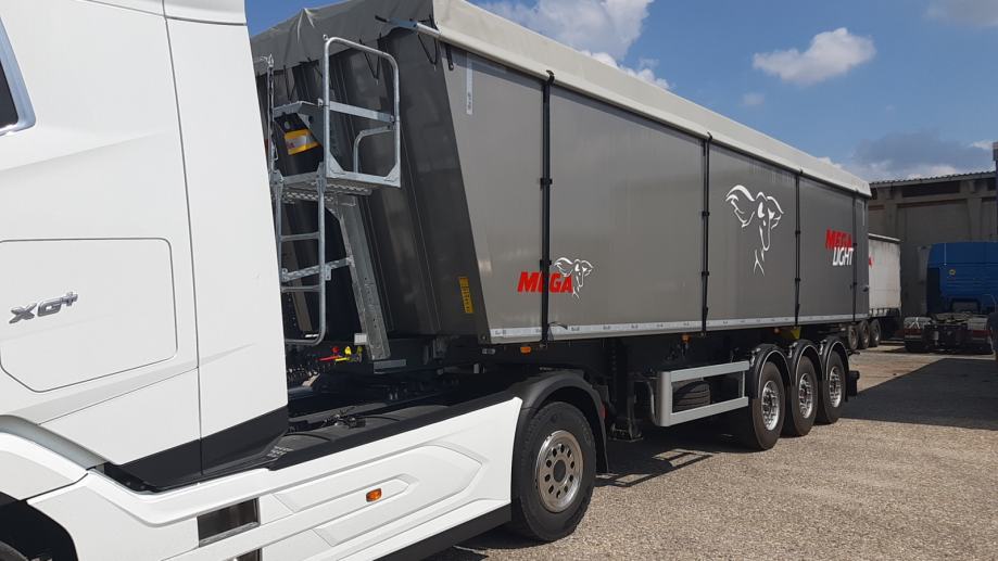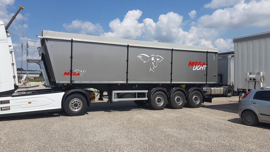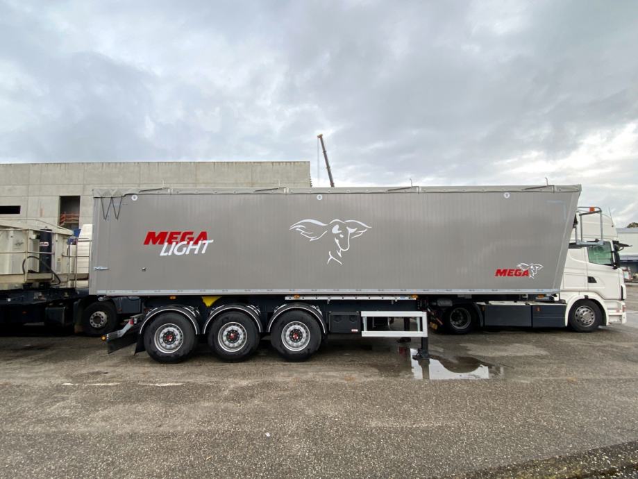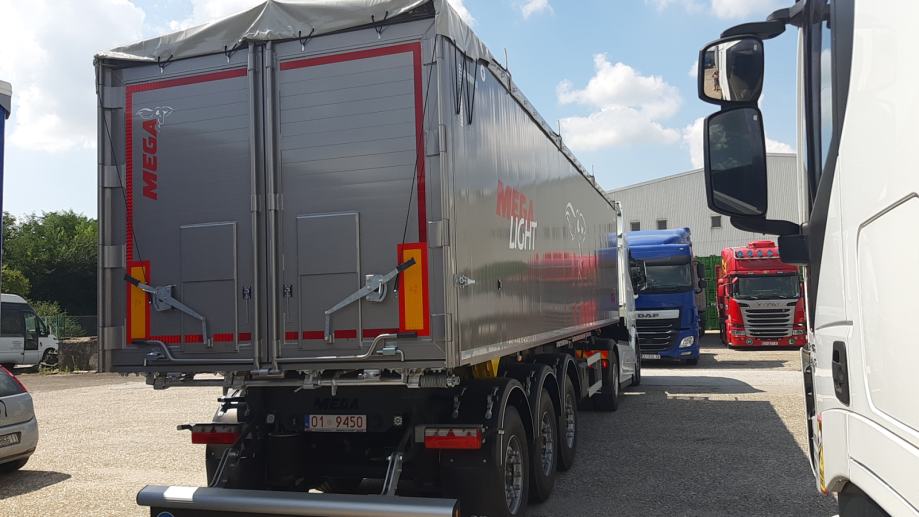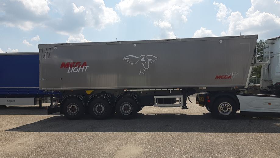 MEGA Light kiperica zapremnine 50m³ - korištena 2 mjeseca - ABS, EBS, zračni ovjes, SAF osovine, podizna 1. osovina, prednji podest, stražnja portalna vrata, rolo pokrivna cerada, rezervni kotač, sanduk za alat, NDM 24.000 kg, težina praznog vozila 6.060 kg, nosivost: 17.940 kg, dimenzije vozila DxŠxV: 10.800 mm x 2.550 mm x 3.790 mm, visina kopčanja 1.250 mm, gume 385/65 R22,5.