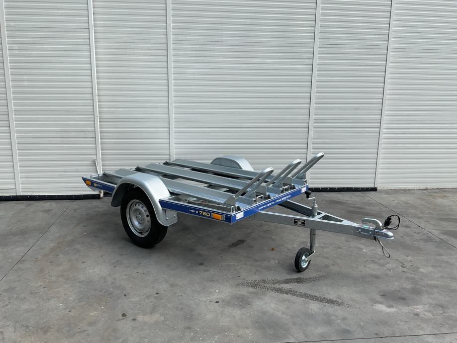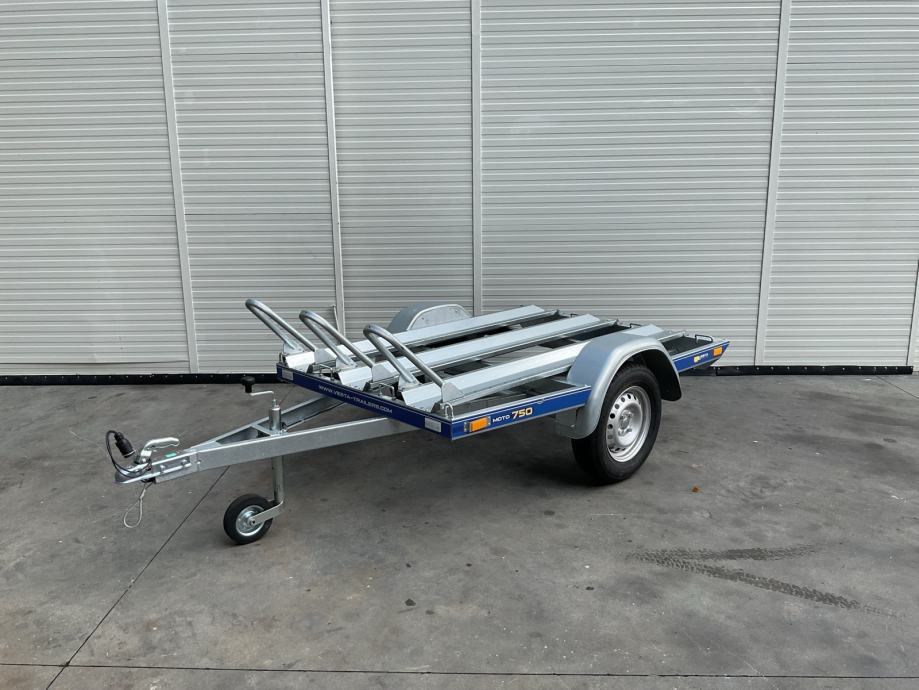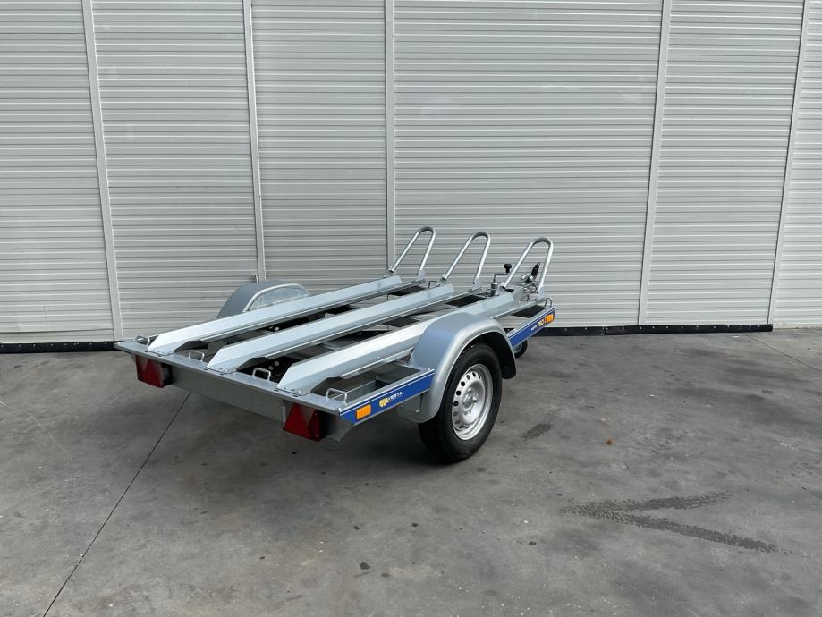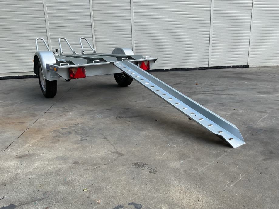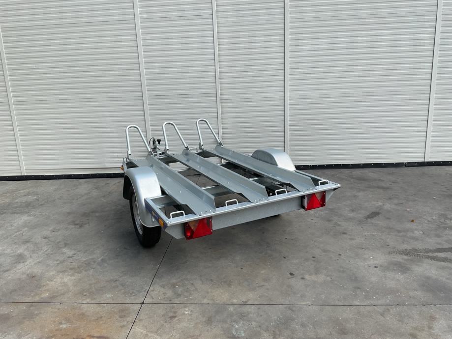 Prikolica za prijevoz motocikla 3 kom. Napravljena od dijelova vrhunskog njemačkog proizvođača Knott, vrlo stabilna i sigurna.