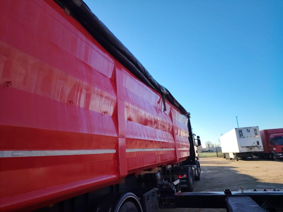VERTRA TRAILER N3KA10 - kiperica za željezni otpad 64 m³, u prometu od 02/2024, WABCO ABS kočioni sistem, disk kočnice, zračni ovjes, SAF osovine, podizna 1. i 2. osovina, pokrivna cerada, kutija za alat, SABA LED svjetla 2x7 pin konektori, 2 potporne noge dinamičkog kapaciteta 25 t (statički 50t), hidraulički cilindar 250 bar (5 stupanjski), pod - Hardox TUF500 (4 mm), bočno - Hardox TUF500 (3 mm), NDM 35.500 kg (45.000 kg), masa praznog vozila 9.500 kg, gume 385/65 R22,5.