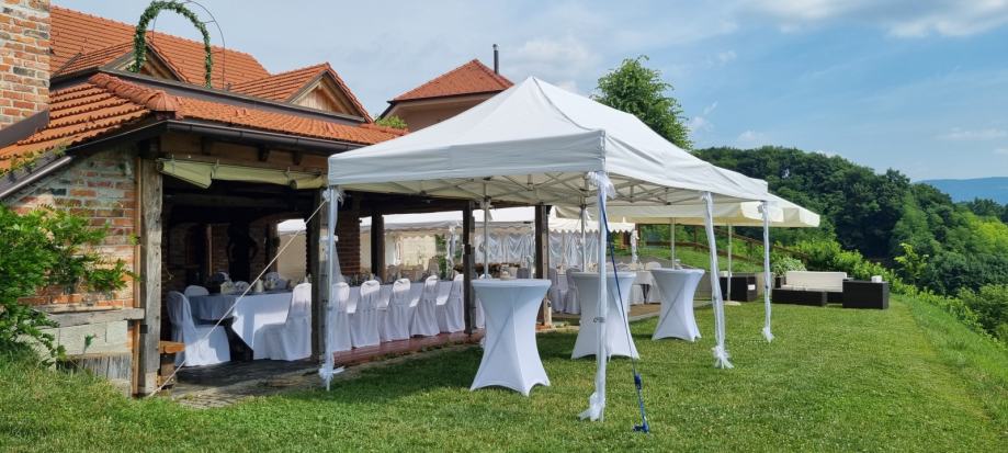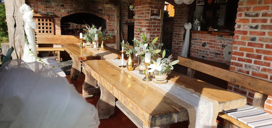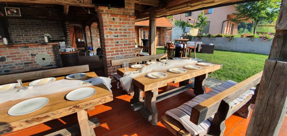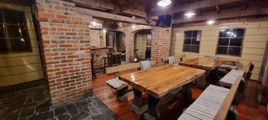 U prostoru za proslave nalazi se velika pečenjara za pečenje odojaka i janjaca (mogućnost 2 istovremeno), roštiljanje, kuhinja, kupaonica, wc, spremište te veliki hladnjak i perilica + dodatni hladnjak. Sva oprema za pečenje osigurana (2 velika roštilja, 2 ražnja za okretanje u pečenjari). Party zvučnik sa mogućnošću spajanja aux, bluetooth. U prostoru je osiguran pribor za jelo, noževi za pripremu hrane, tanjuri, čaše i zdjele.