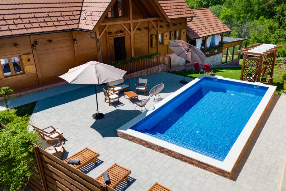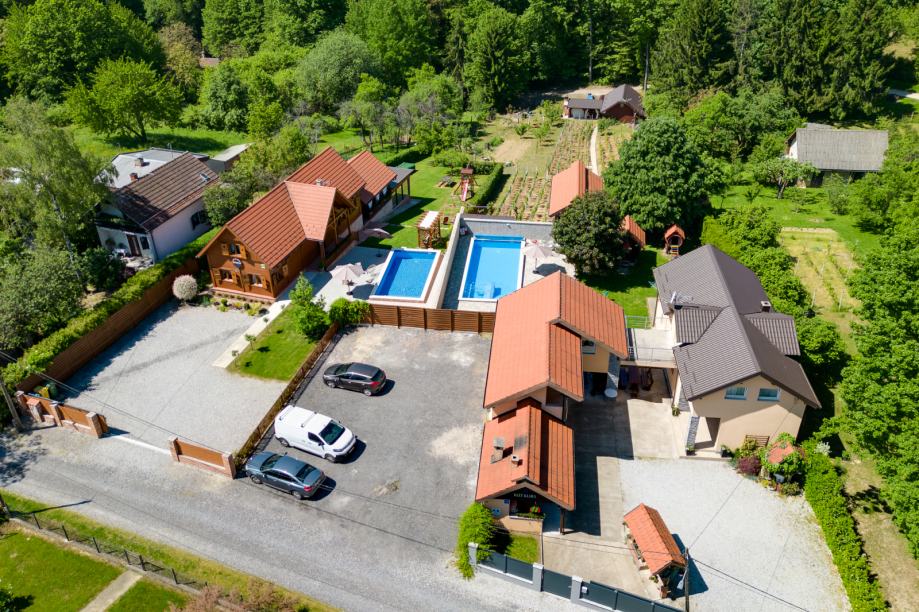 Provedite nezaboravne trenutke s obitelji i prijateljima u prirodi Vukomeričkih gorica ,samo 15 minuta voženje od središta Zagreba. U ponudi imamo dvije odvojene kuće koje su idealno mjesto za višednevni odmor s obitelji, te organizaciju manjih proslava do 30 osoba. Kuće je moguće iznajmiti na jedan dan, više dana, ili duži vremenski period. Cijena kuće je po dogovoru, a ovisi o broju dana i svrsi iznajmljivanja tj. dali se radi o višednevnom odmoru ili samo za organizaciju jednodnevne proslave. Na raspolaganju Vam stoje roštilj, peka, ražanj, kotlić za kotlovinu, te potpuno opremljena kuhinja. Moguće je unajmiti osobu za pečenje roštilja, janjetine i odojka te catteringa. Drva za ogrjev i roštilj su Vam osigurana. Svaka od kuća ima veliki dnevni boravak sa stolovima za cc 30 osoba, kuće imaj klimu i veliki kamin na drva. Kuća je okružena ograđenom okućnicom od 2500m2 sa zelenom površinom i cvjetnjakom, privatnim parkiralištem za cc 20 automobila. Otvoreni smo tokom cijele godine, bazen je grijani i u funkciji je od 01.04 do 01.10..