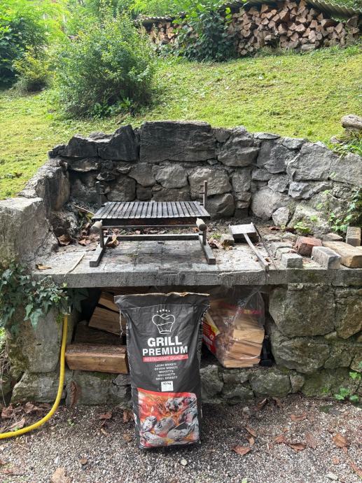 Na vanjskom prostoru dostupni su roštilj, kotlić te pribor za peku i kotlovinu.